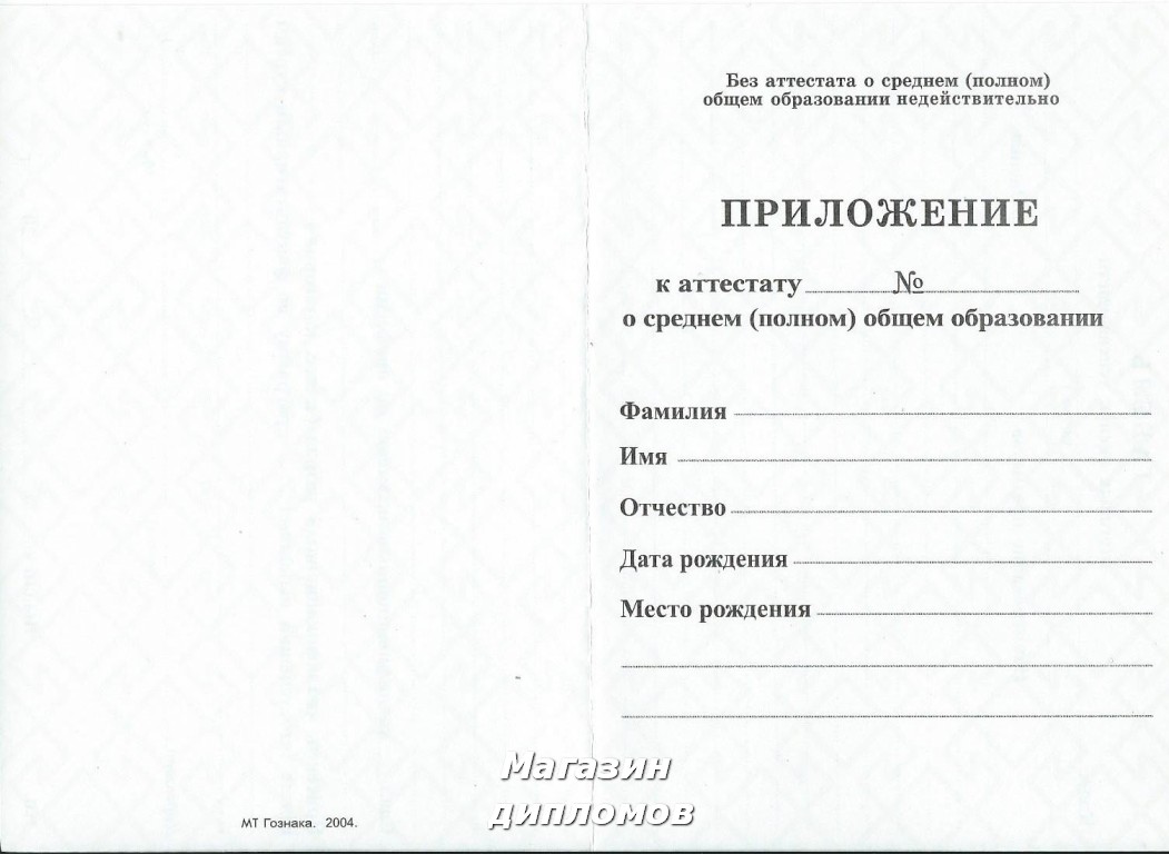 Аттестат Российской Федерации за 11 классов, выдавался с 1998 года по 2006 год.